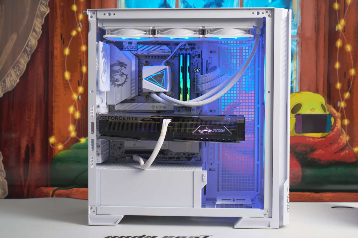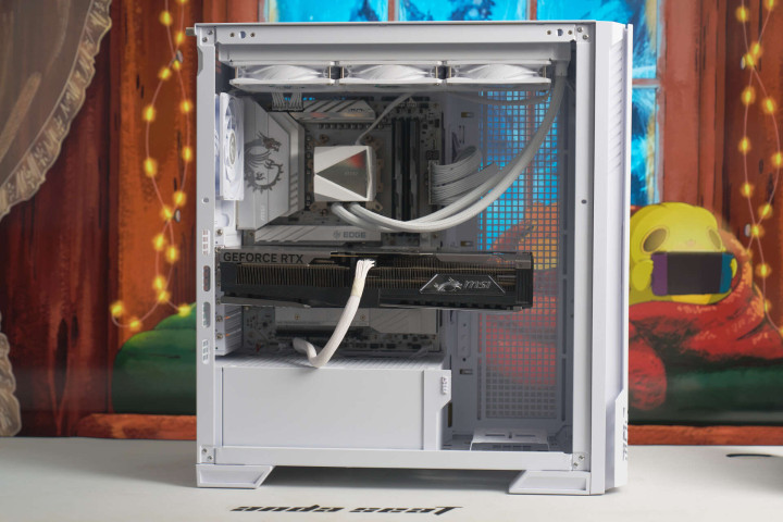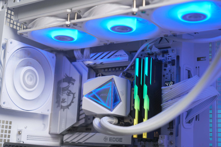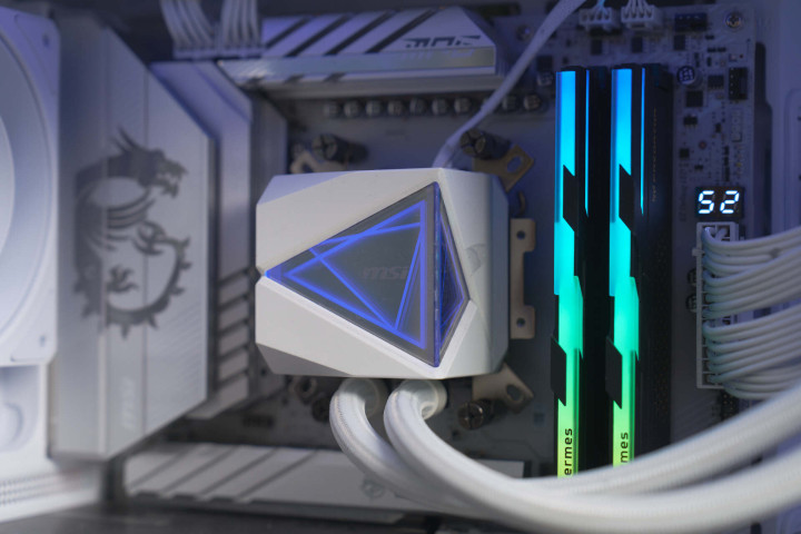 散热遴选微星 MAG CORELIQUID I360 WHITE 水冷,与 MPG VELOX 100R WHITE 机箱号称 “纯白装机黄金搭档”,不仅色调匹配度拉满,装机兼容性也毫无问题,合座搭配成果颠倒亮眼。