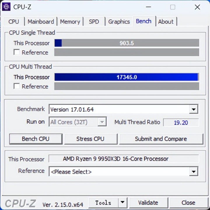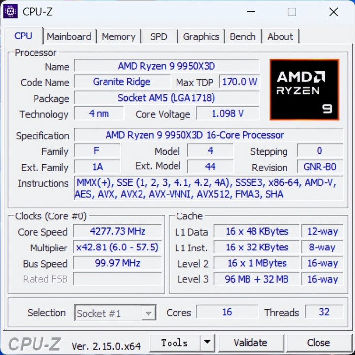 当先来看CPU-Z,9950X3D还是识别出来了。