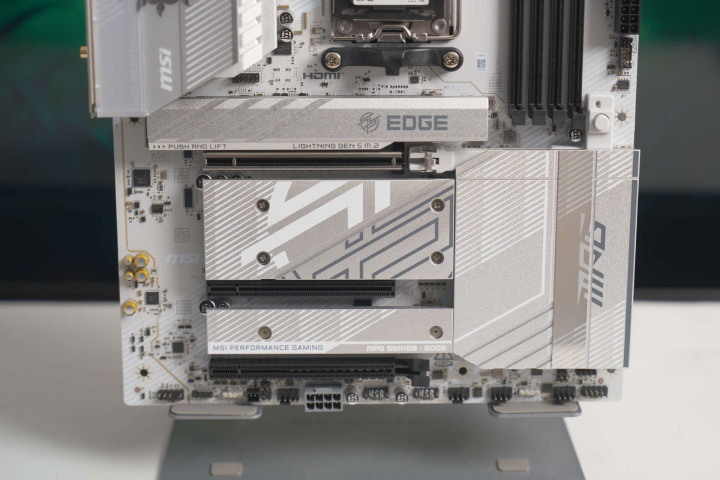主板主 PCIe 插槽满血支捏 PCIe 5.0 x 16 通谈,足以适配各类高规格显卡。插槽外部包裹金属加固装甲,不仅能增强结构强度,还能灵验保险显卡耐久开动的踏实性,权贵延迟插槽使用寿命。值得一提的是,插槽尾部搭载翻新显卡快拆机械结构,通过优化野心将显卡锁扣开关移至主板右侧,采用按压式按钮布局,让日常拆装显卡的操作更方便高效,大幅裁汰艳羡门槛。