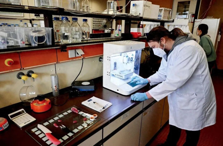 2022年4月,德国南部巴登-符腾堡州一所行使技巧大学的实验室内,博士生正在操作一台3D打印机。图/IC